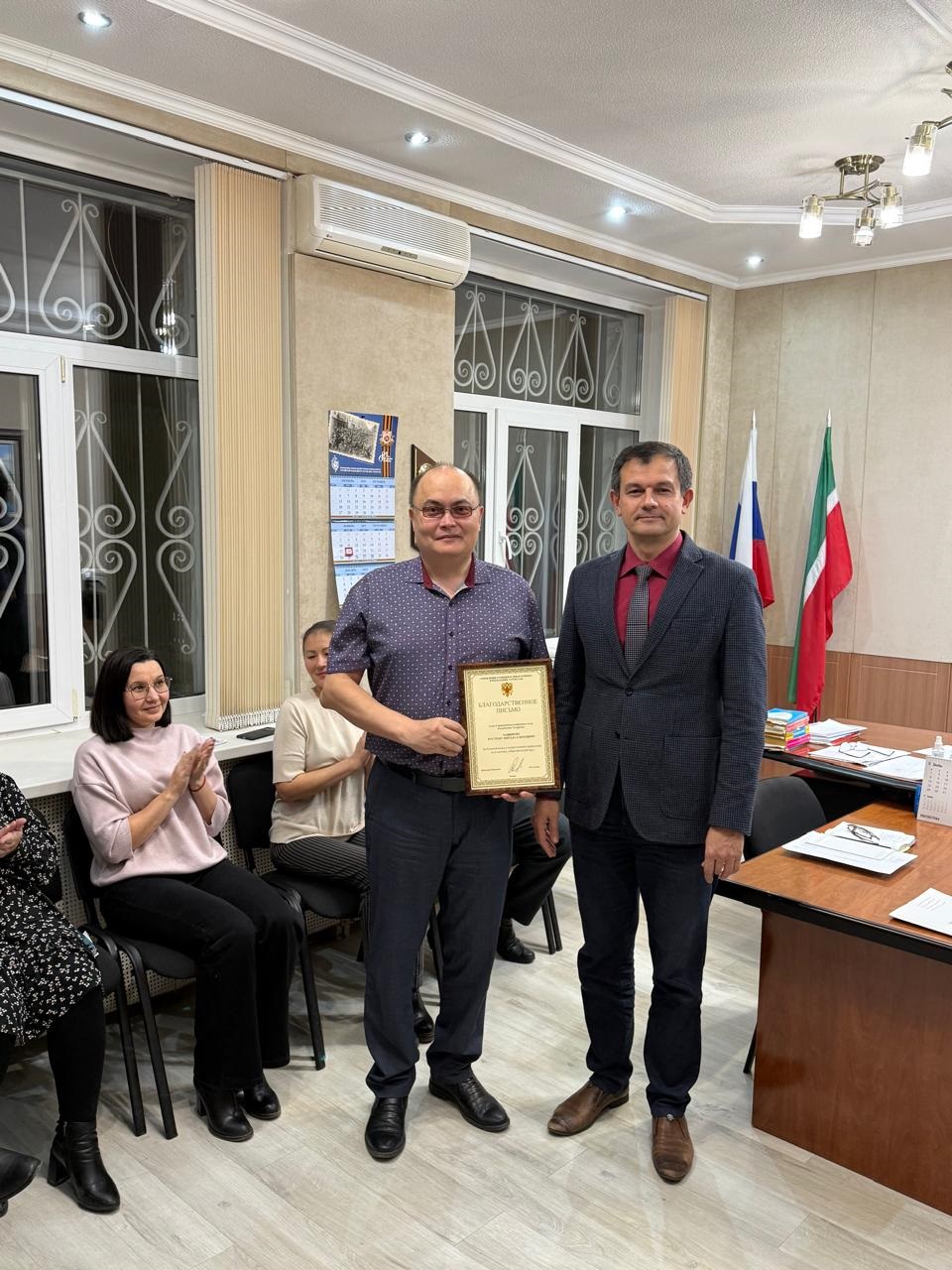 В Сармановском районном суде 19 ноября 2025 года состоялось совещание с участием председателя Сармановского районного суда Р.Р. Хайбрахманова, судьи Сармановского районного суда Р.М. Ханипова, мировых судей судебных участков № 1 и № 2 А.Н. Хазиева, Л.Р. Фатиховой, а также работников аппаратов районного суда и мировых судей судебных участков № 1, № 2 Сармановского района. В торжественной обстановке председатель суда Р.Р. Хайбрахманов вручил судье Сармановского районного суда Р.М. Ханипову Благодарность Управления Судебного департамента Республики Татарстан за большой вклад в осуществлении правосудия, долголетний и добросовестный труд, также вручена Благодарность Управления Судебного департамента Республики Татарстан работнику аппарата районного суда секретарю судебного заседания Р.М. Гариповой за безупречную, эффективную гражданскую службу.